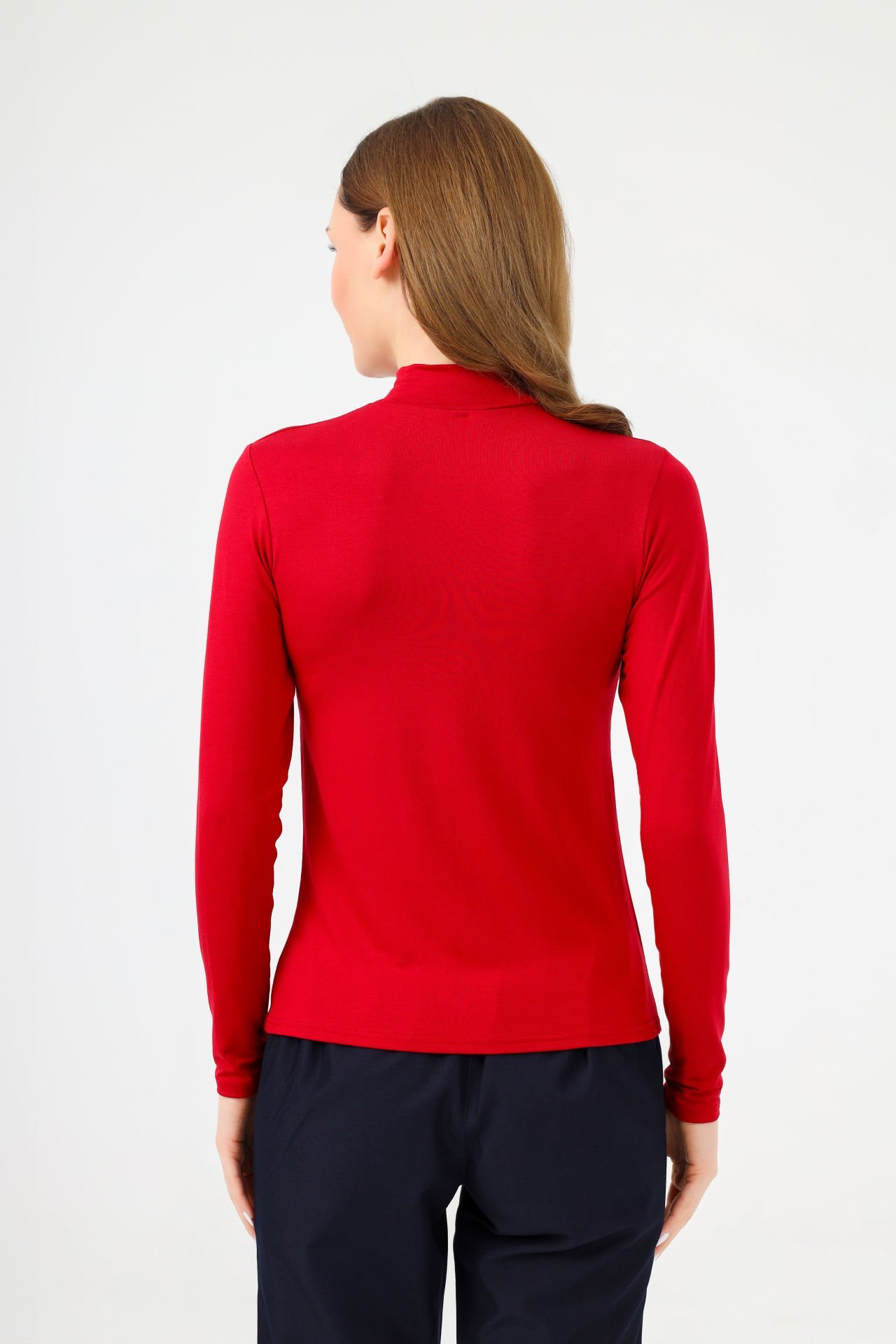 Balıkçı yaka koyu kırmızı body, teninize yumuşakça uyum sağlayan esnek yapısıyla gün boyunca konfor sunar. Renkli gardıroplar için ideal bir tamamlayıcıdır.