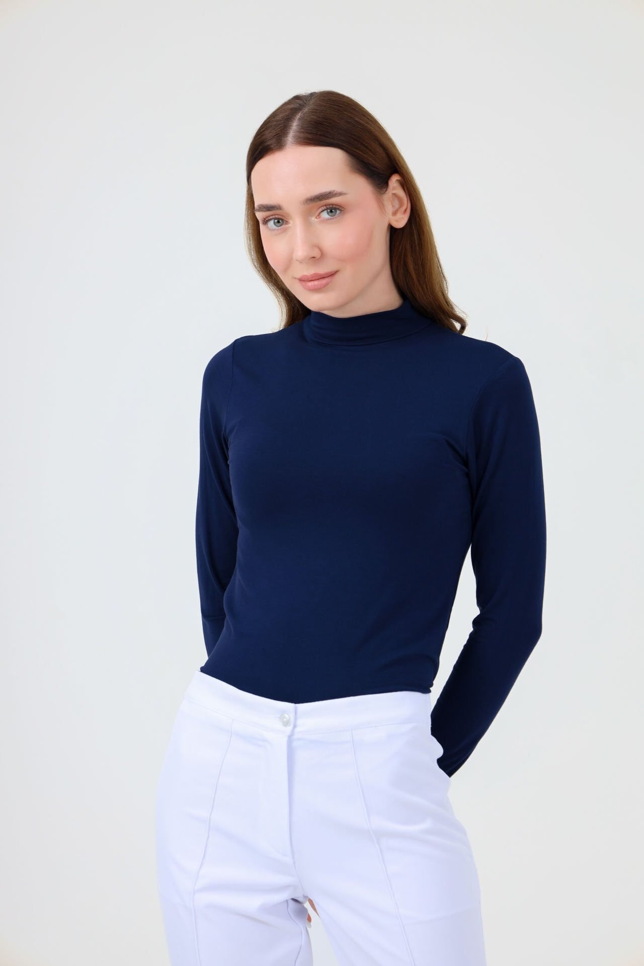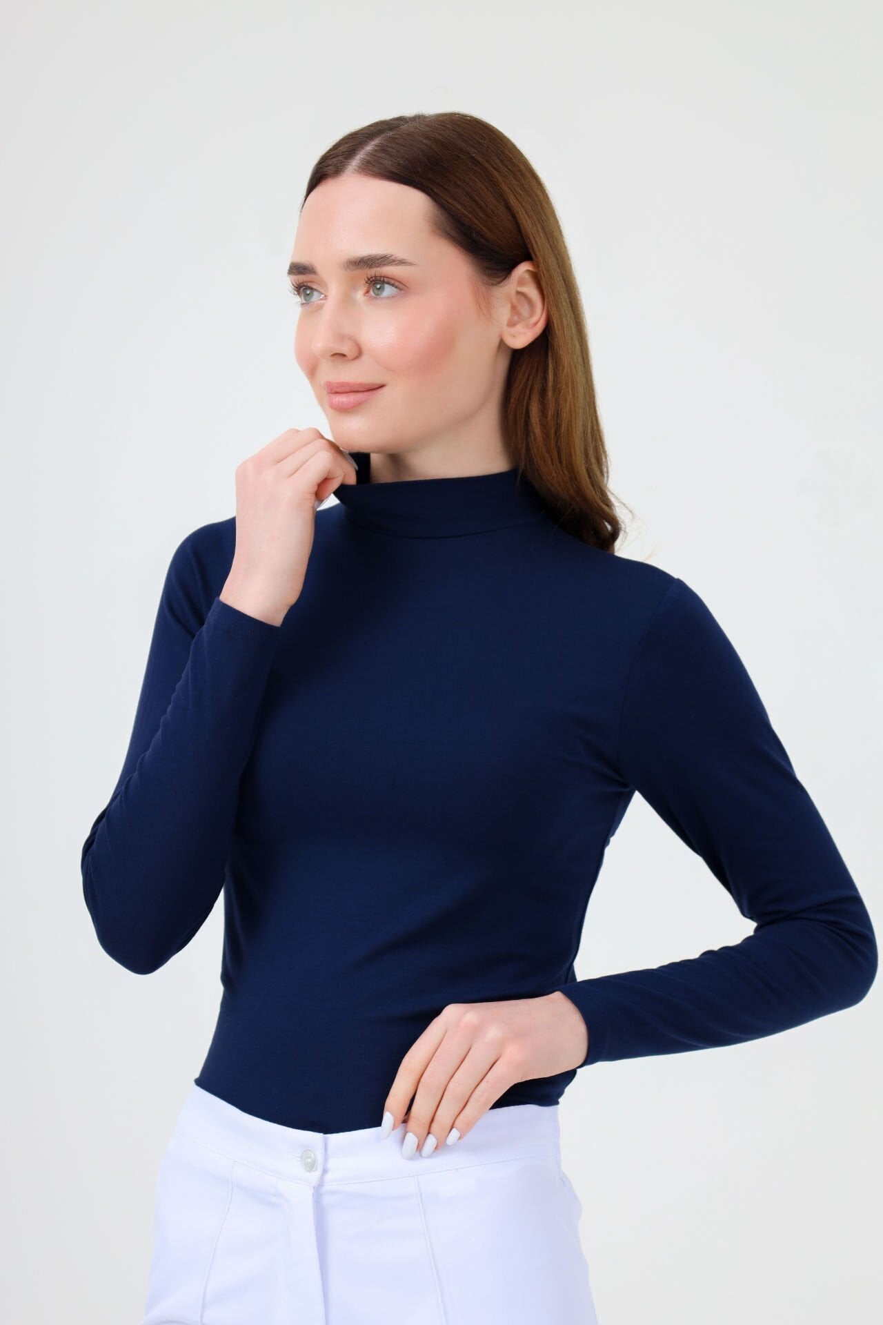 Balıkçı yaka lacivert body, esnek kumaşı ve rahat tasarımıyla gün boyu konfor sunar. Her mevsime uygun yapısıyla uzun süreli kullanım için idealdir.