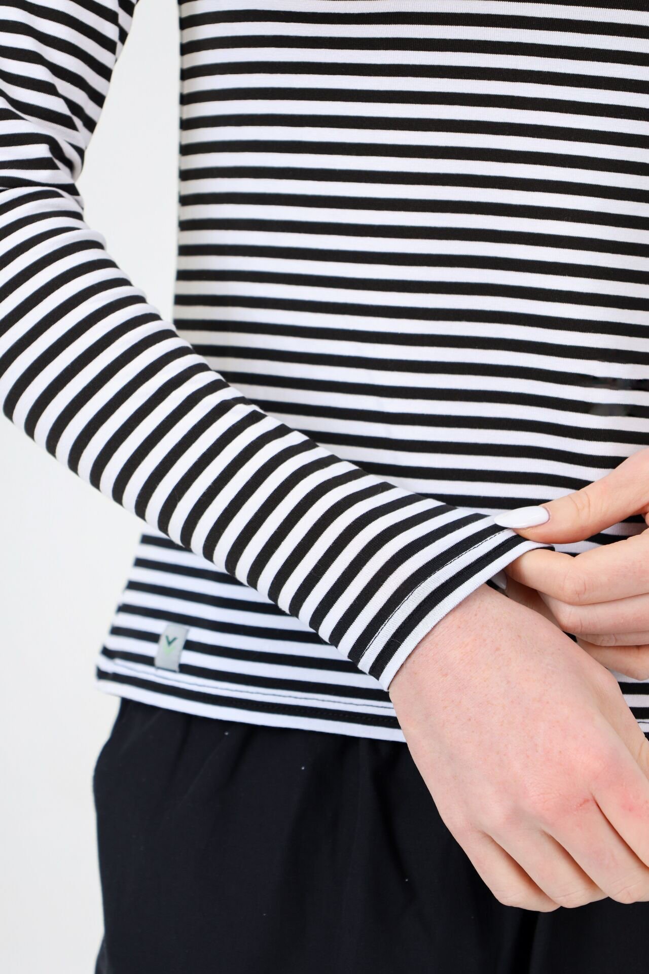 BALIKÇI YAKA ÇİZGİLİ BODY BEYAZ SİYAH