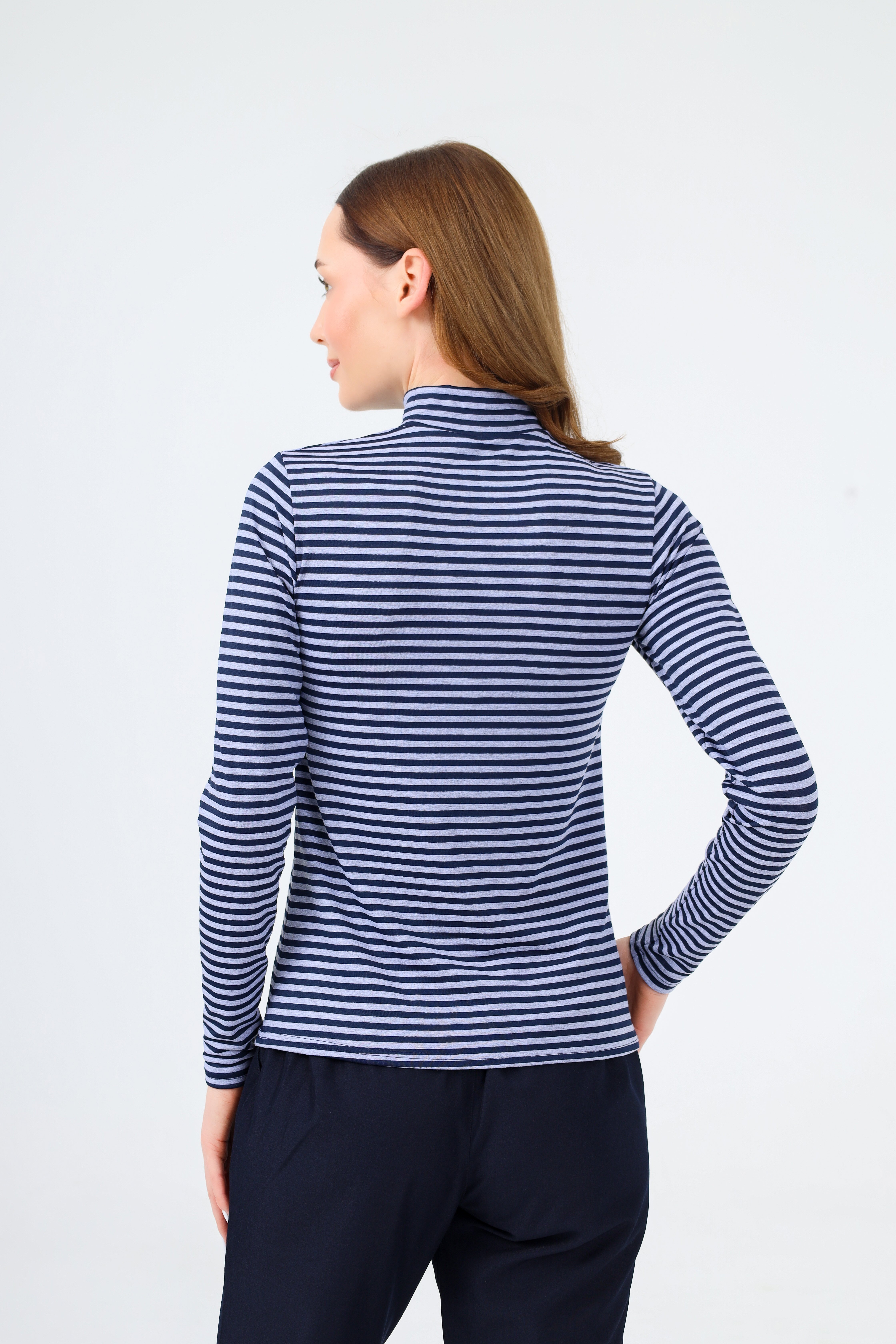 BALIKÇI YAKA ÇİZGİLİ BODY GRİ LACİVERT