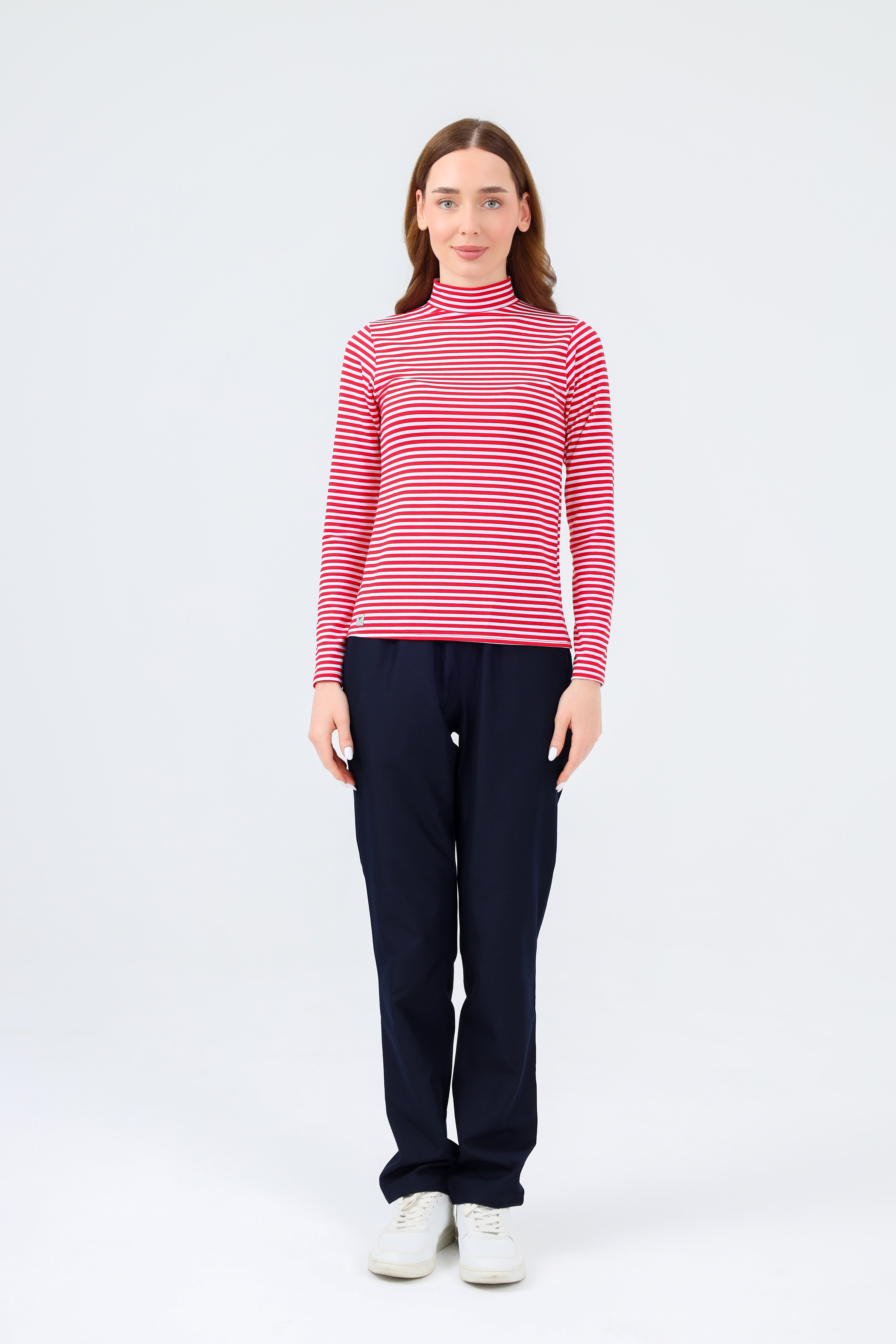 BALIKÇI YAKA ÇİZGİLİ BODY KIRMIZI BEYAZ