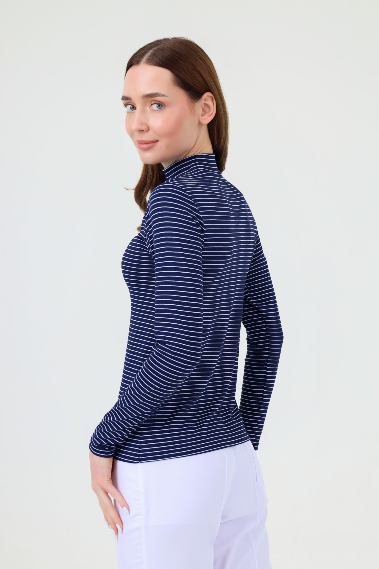 BALIKÇI YAKA ÇİZGİLİ BODY LACİVERT BEYAZ