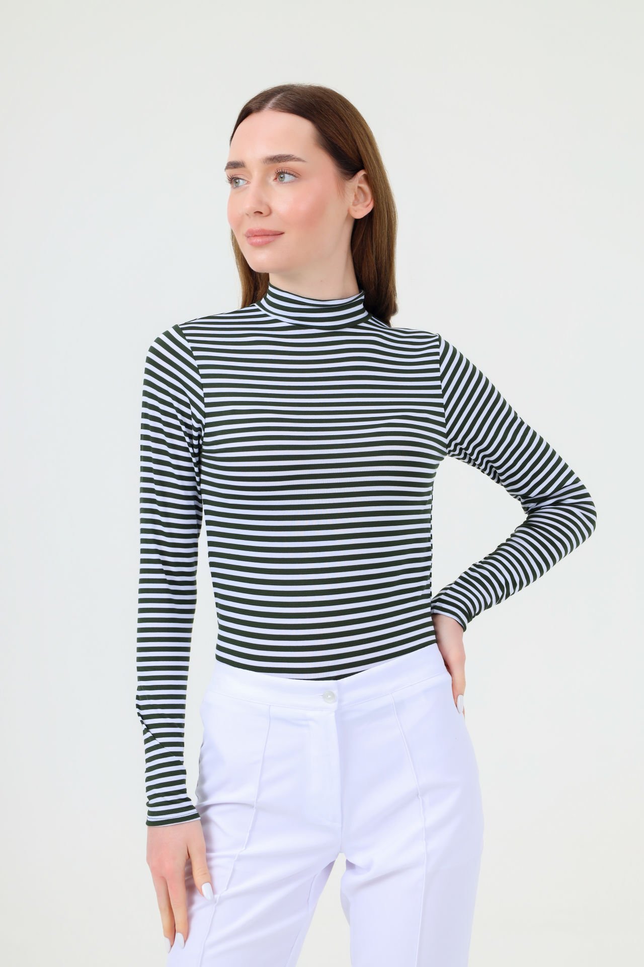 BALIKÇI YAKA ÇİZGİLİ BODY YEŞİL BEYAZ