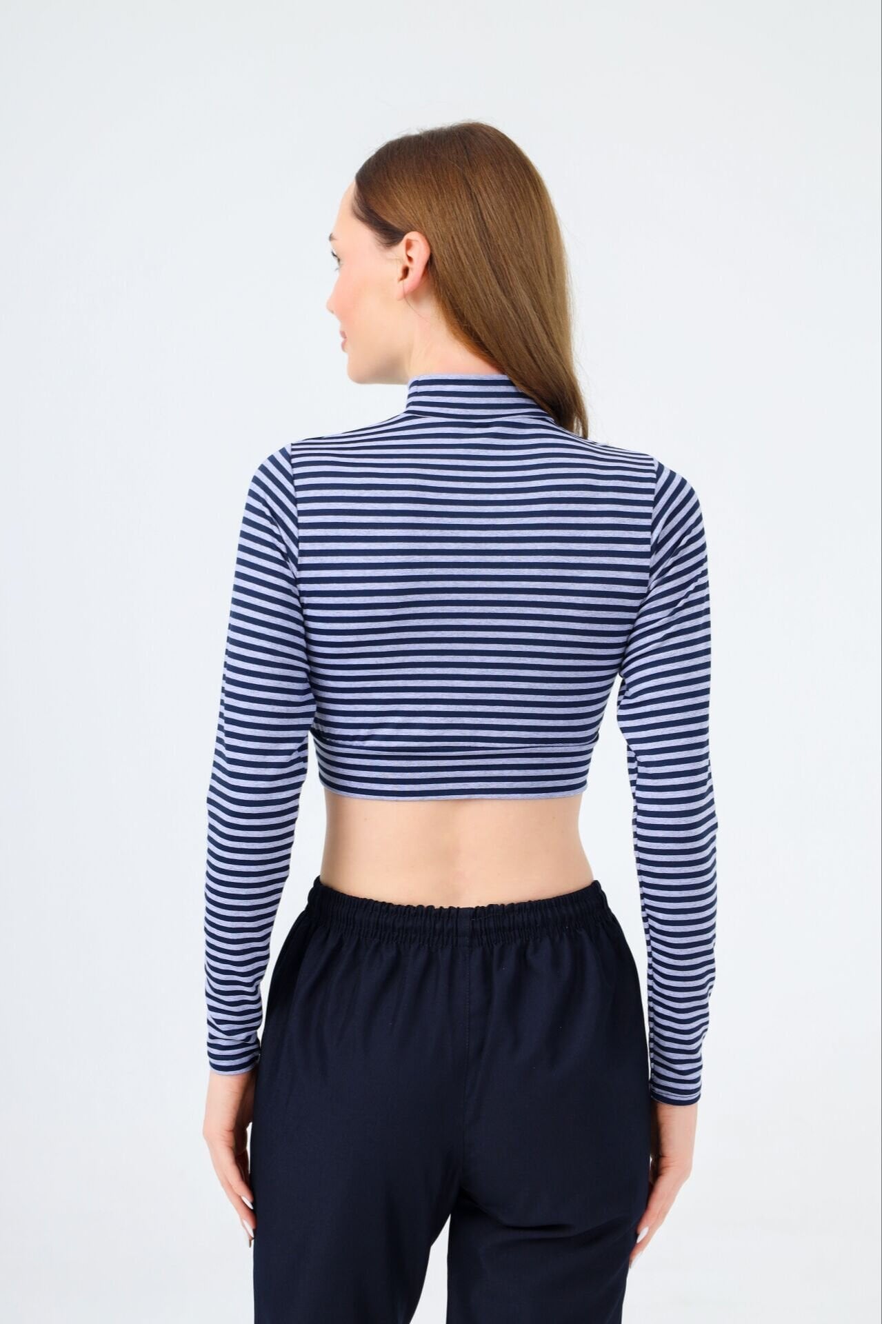 BALIKÇI YAKA ÇİZGİLİ CROP BODY GRİ LACİVERT