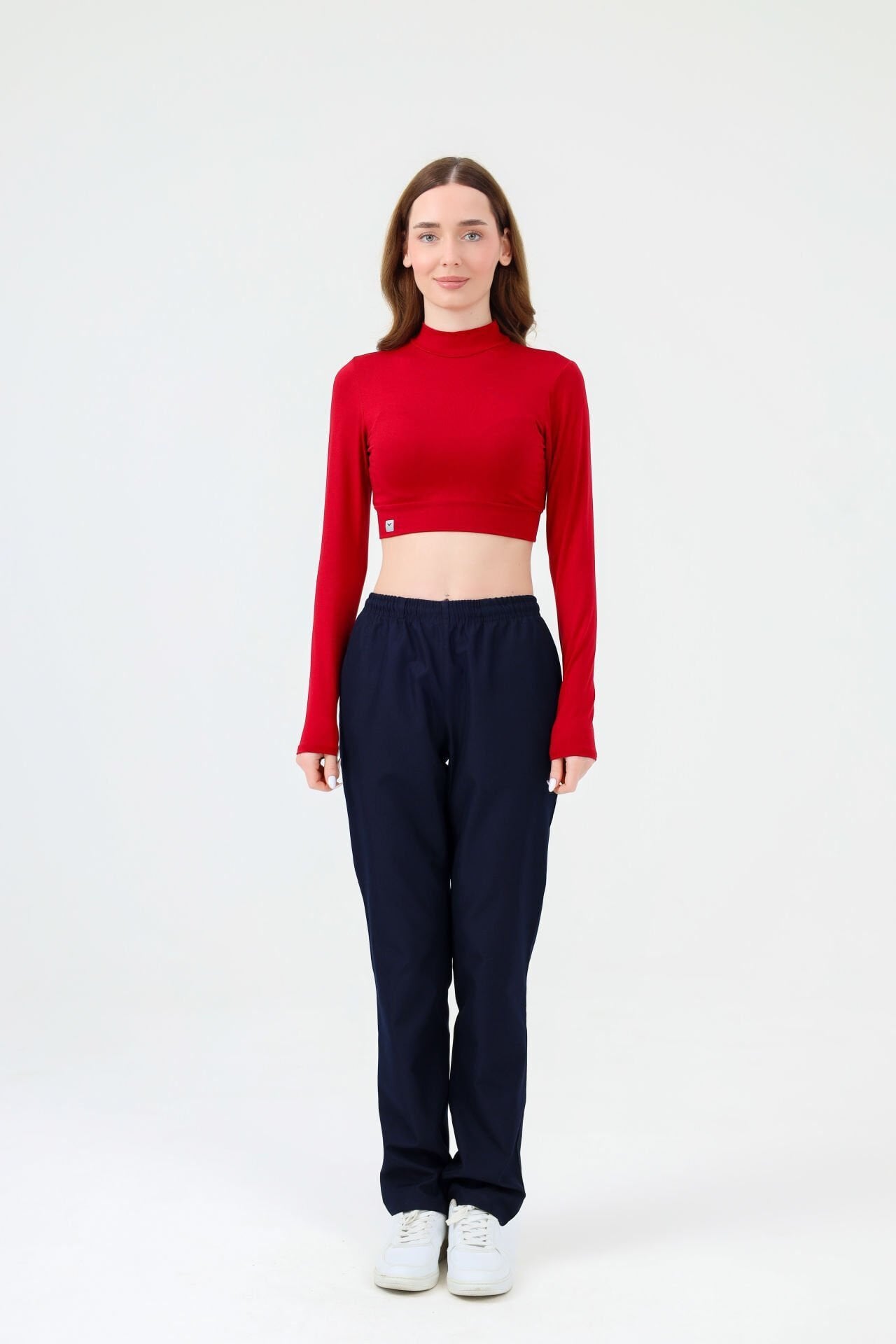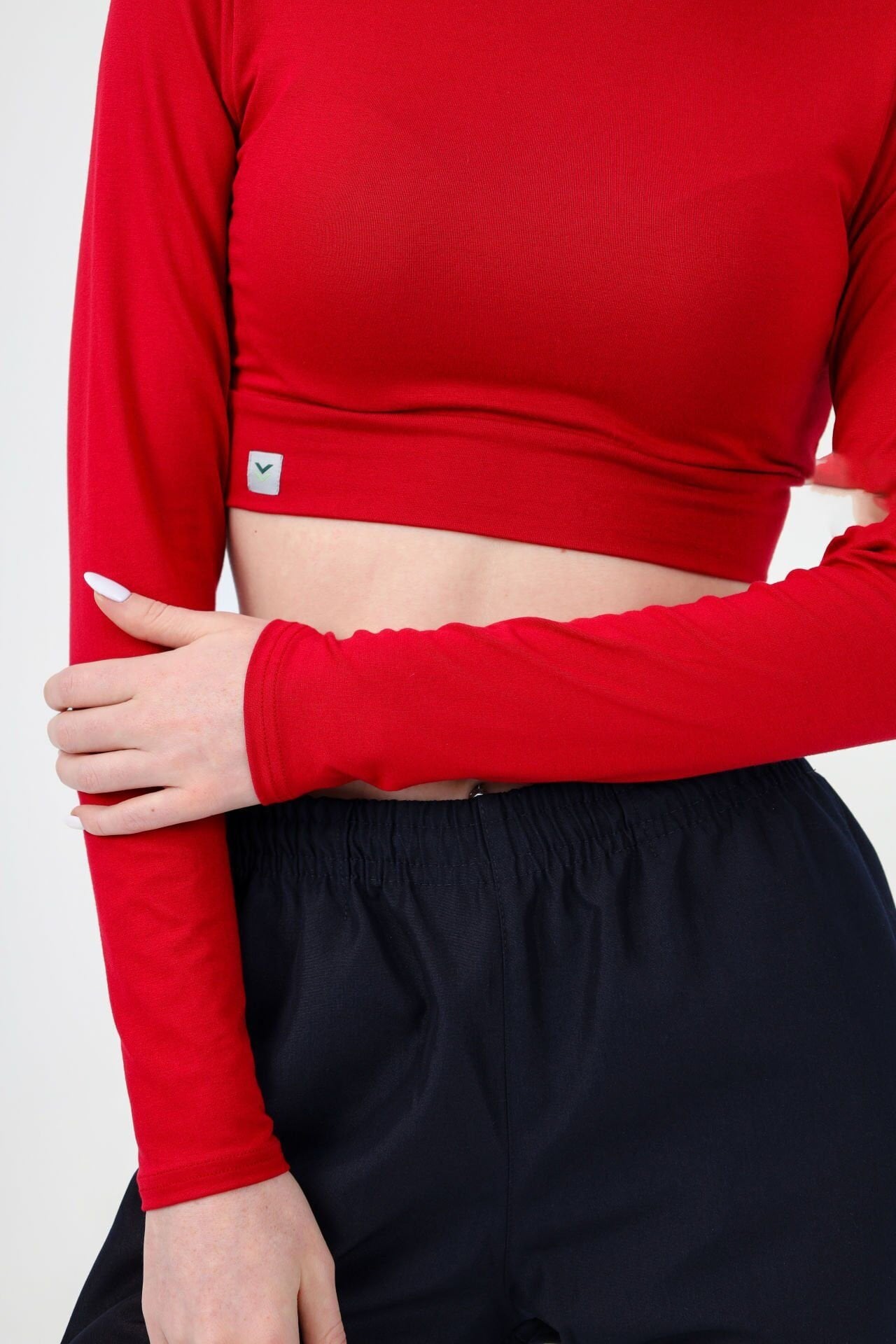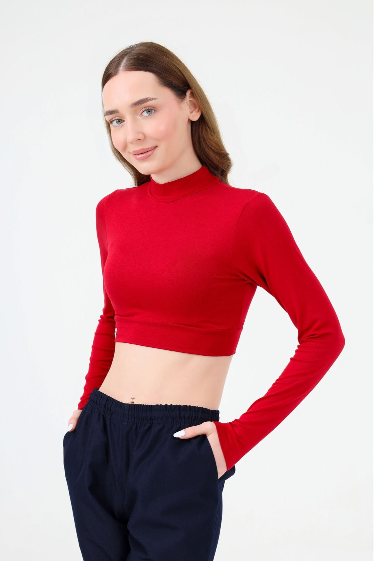 BALIKÇI YAKA CROP BODY KOYU KIRMIZI