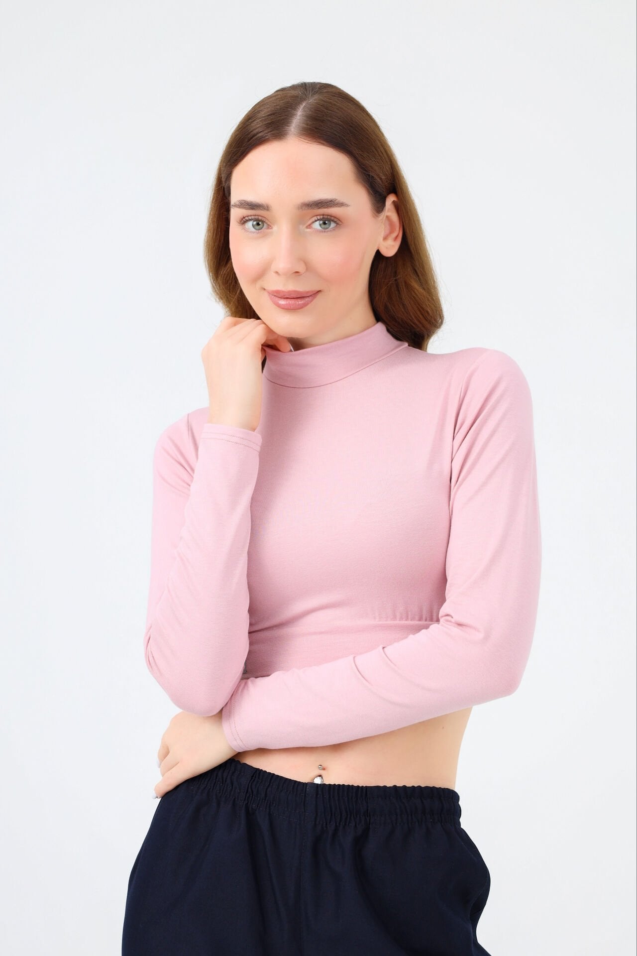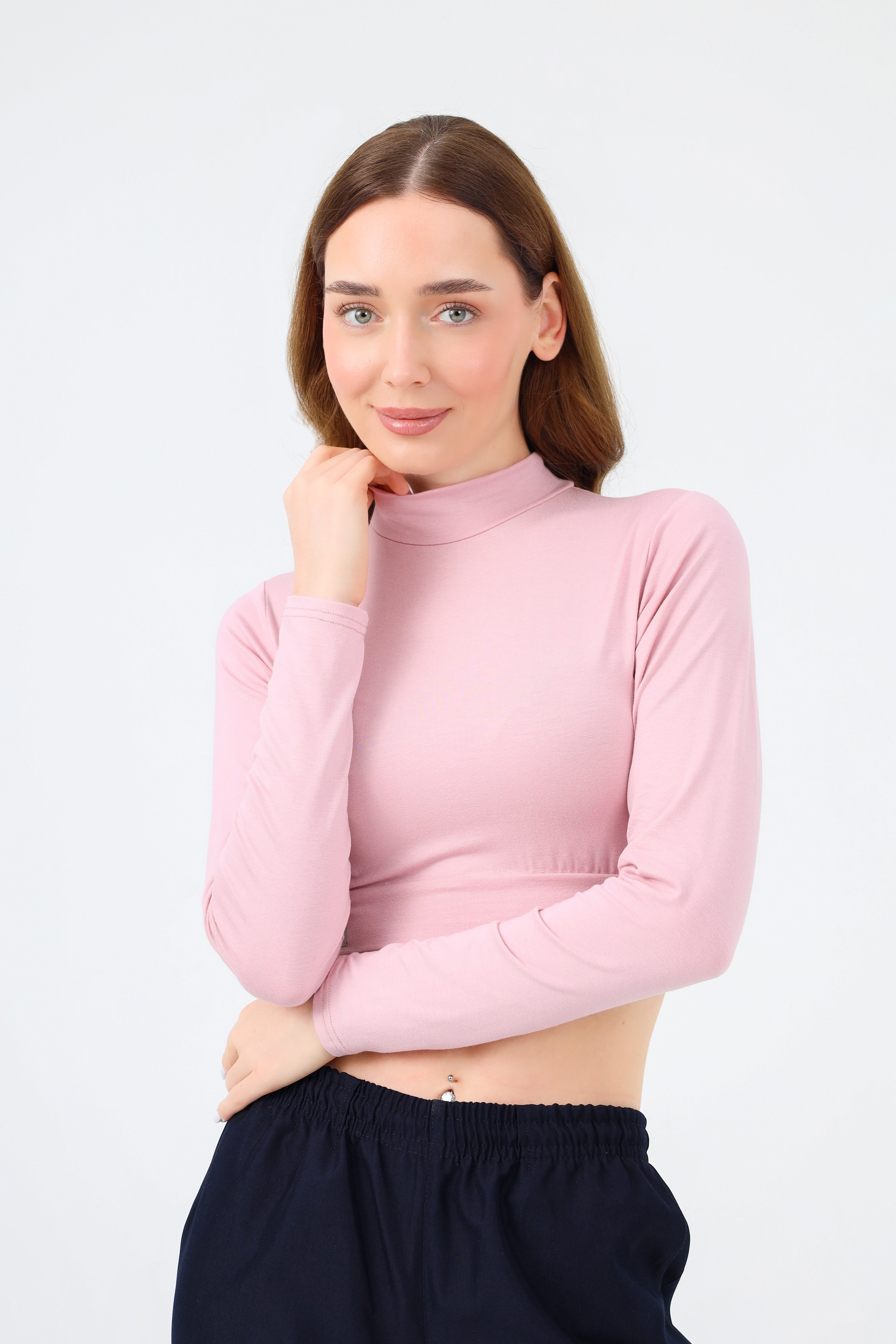 BALIKÇI YAKA CROP BODY KOYU PUDRA