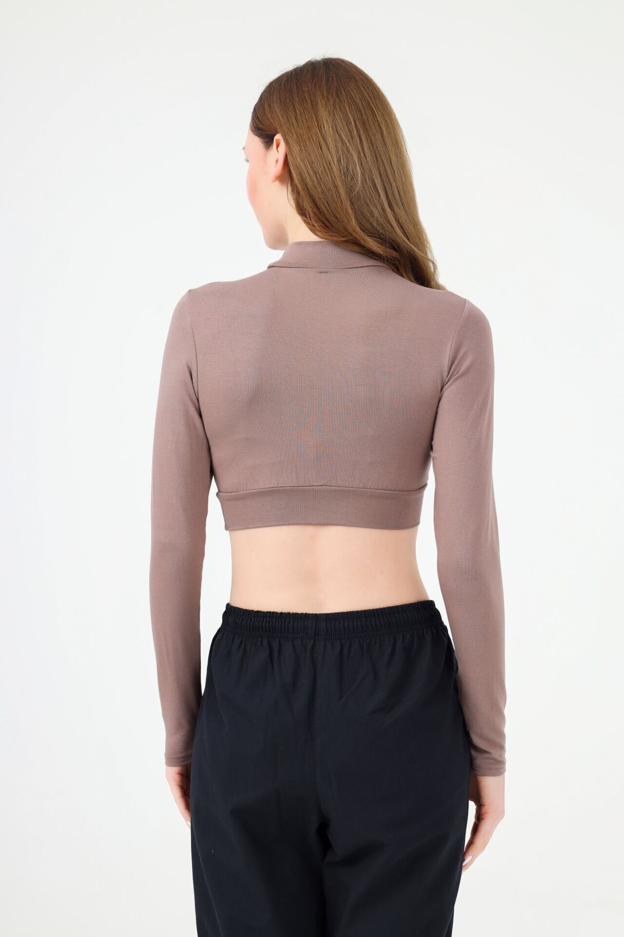 BALIKÇI YAKA CROP BODY KOYU VİZON