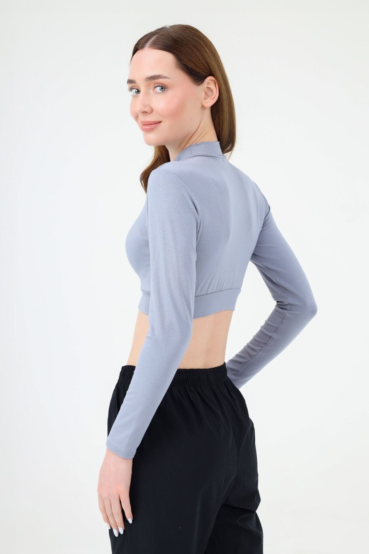 BALIKÇI YAKA CROP BODY GRİ