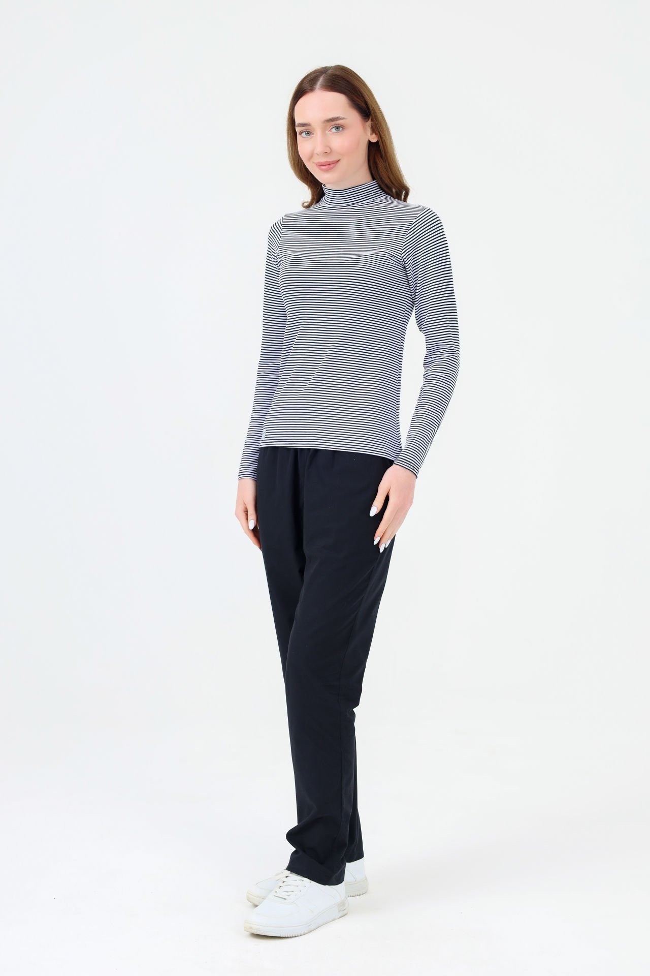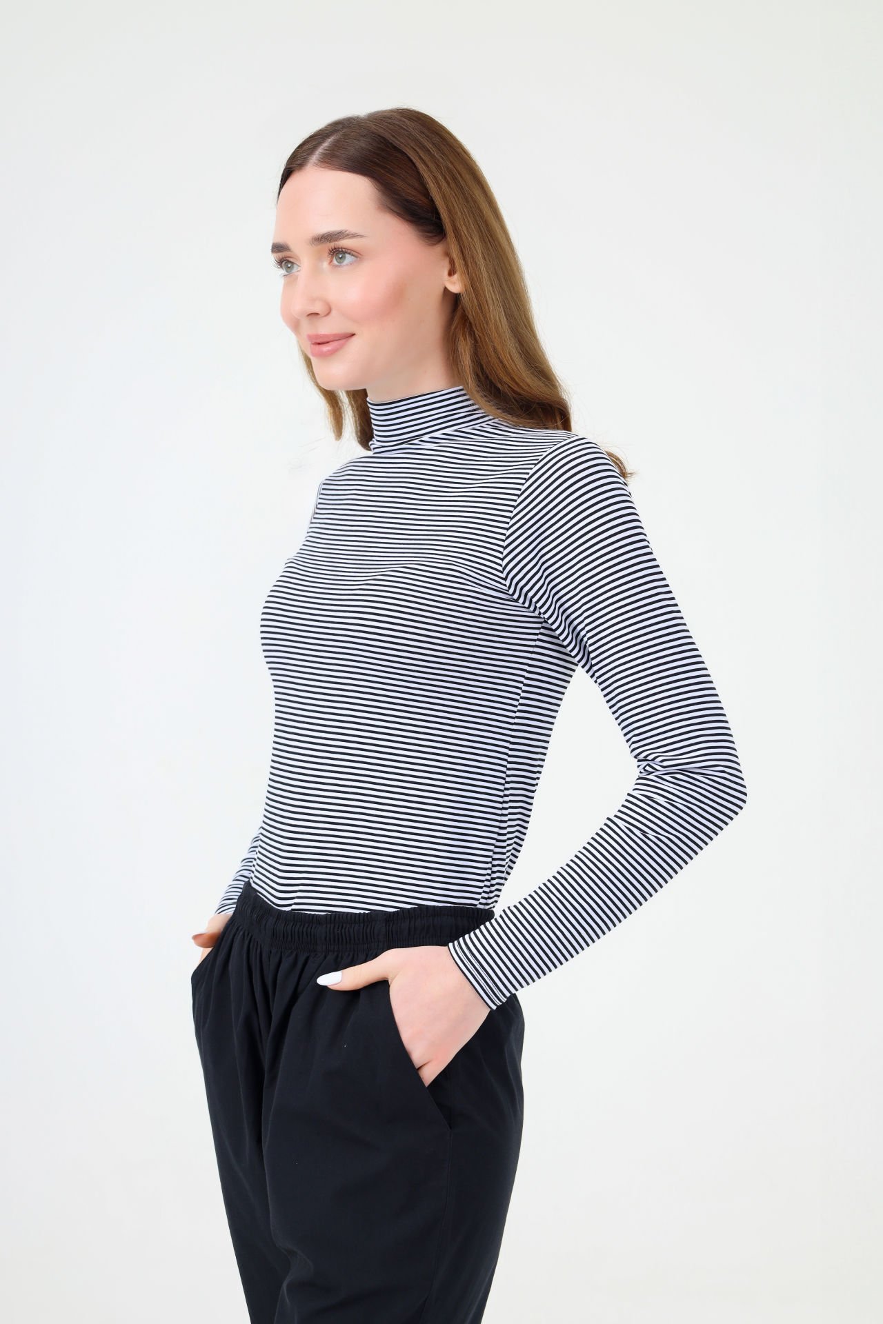 BALIKÇI YAKA İNCE ÇİZGİLİ BODY SİYAH BEYAZ