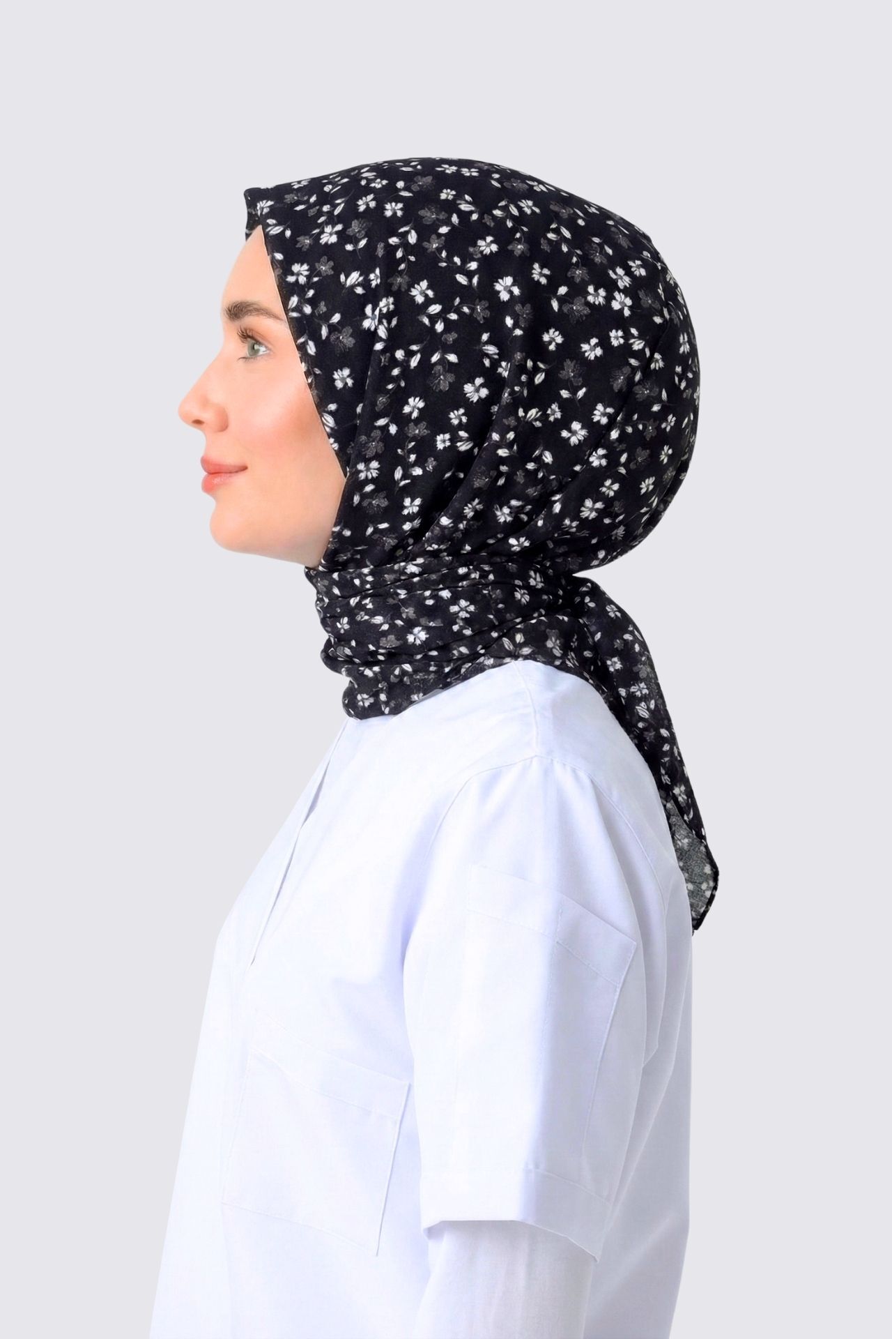 MİNİ ÇİÇEK DESEN CERRAHİ TESETTÜR BONE SİYAH
