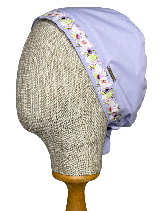 Bonenin sağ ve sol yan kısımlarında transfer baskı tekniğiyle hazırlanmış desenler bulunmaktadır. Bu desenler uzun süre canlılığını korur ve tasarıma estetik bir görünüm kazandırır. Cerrahi büyük klasik bone, büyük ve derin kalıbı sayesinde tesettür kullanımı için uygundur.