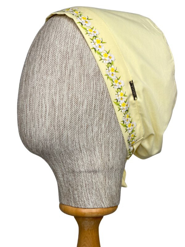 Bonenin sağ ve sol yan kısımlarında transfer baskı tekniğiyle hazırlanmış desenler bulunmaktadır. Bu desenler uzun süre canlılığını korur ve tasarıma estetik bir görünüm kazandırır. Cerrahi büyük klasik bone, büyük ve derin kalıbı sayesinde tesettür kullanımı için uygundur.