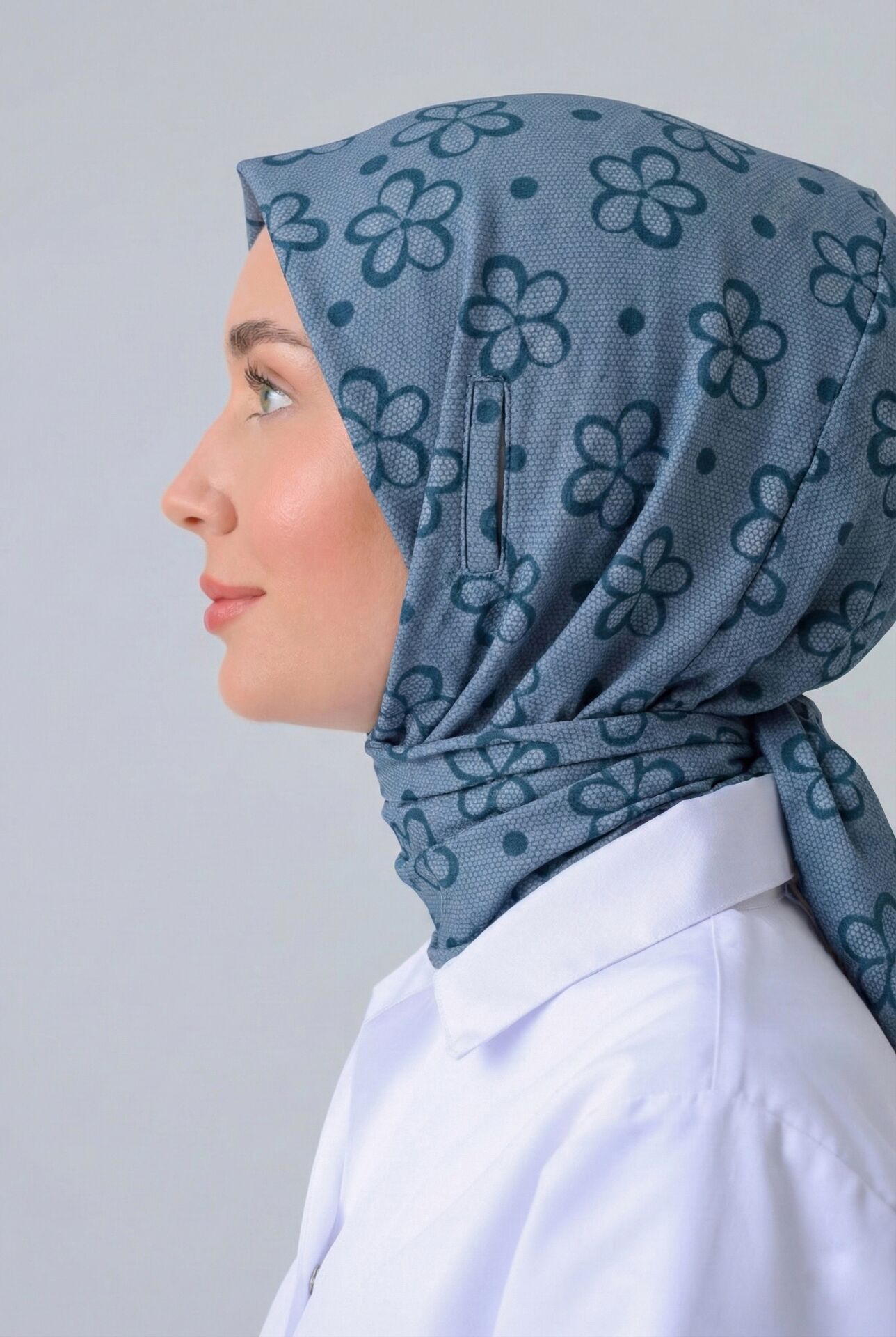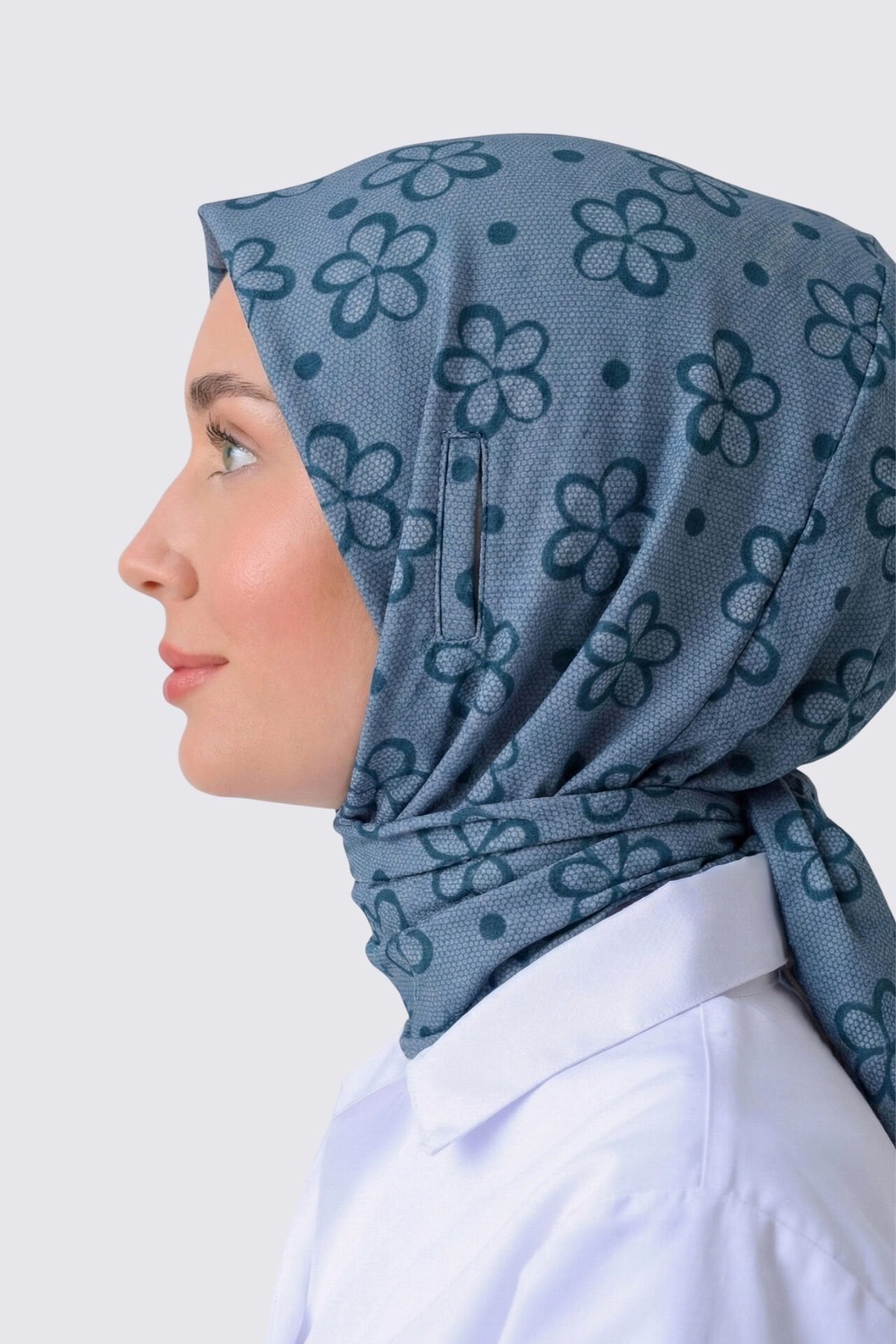 STETOSKOP GİRİŞLİ ÇİÇEK DESEN CERRAHİ TESETTÜR BONE PETROL MAVİSİ