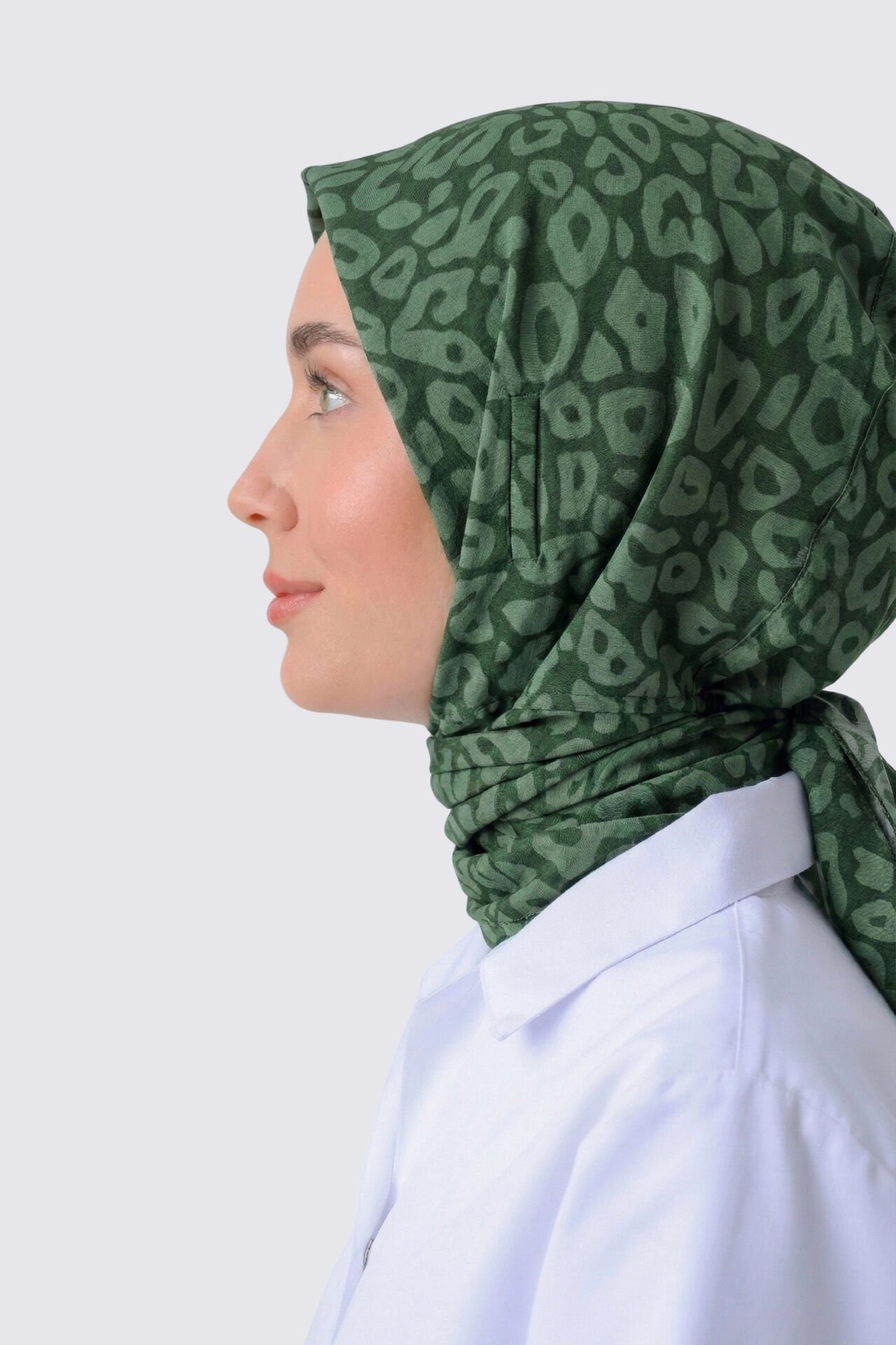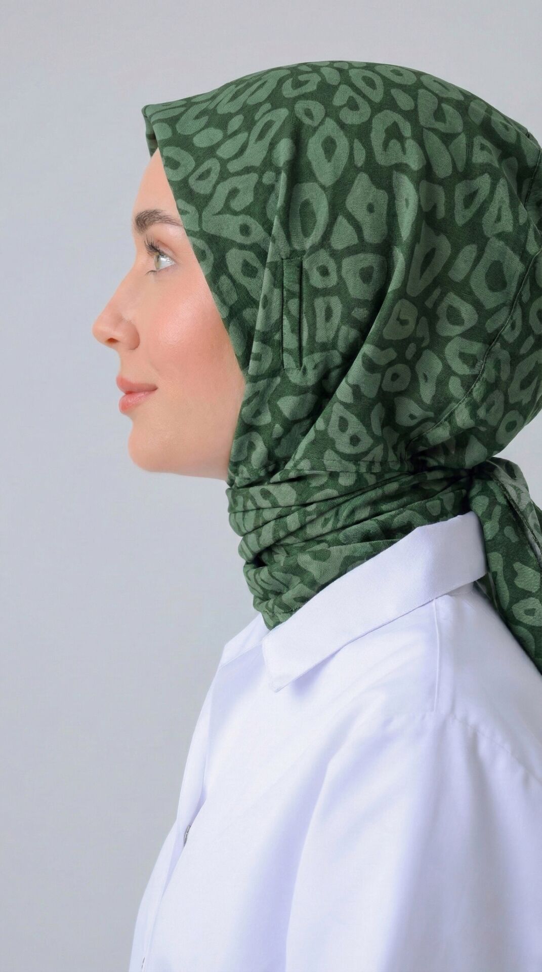 STETOSKOP GİRİŞLİ LEOPAR DESEN CERRAHİ TESETTÜR BONE YEŞİL