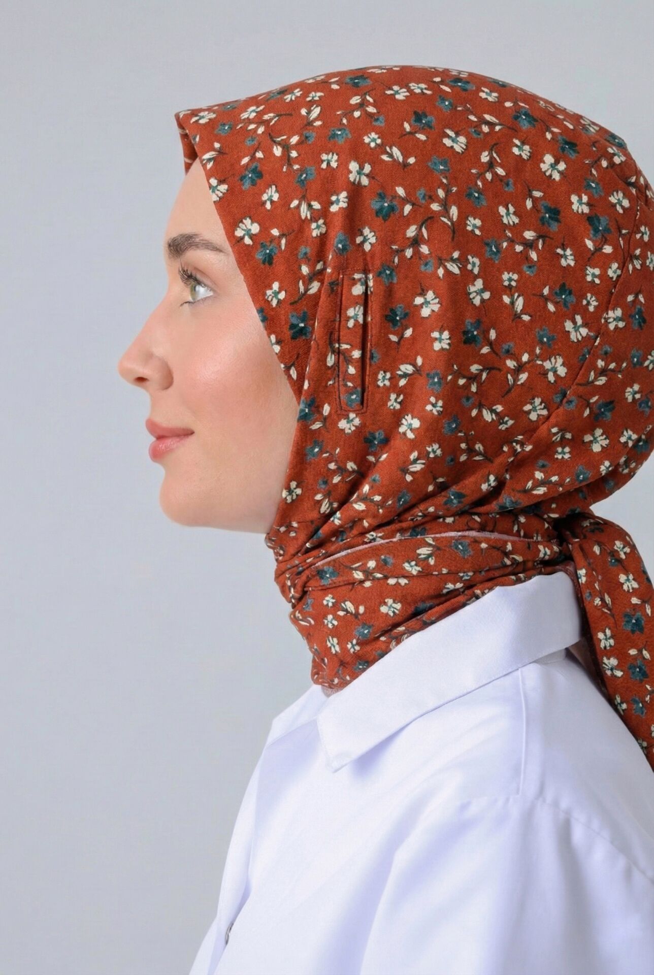 STETOSKOP GİRİŞLİ MİNİ ÇİÇEK DESEN CERRAHİ TESETTÜR BONE KİREMİT
