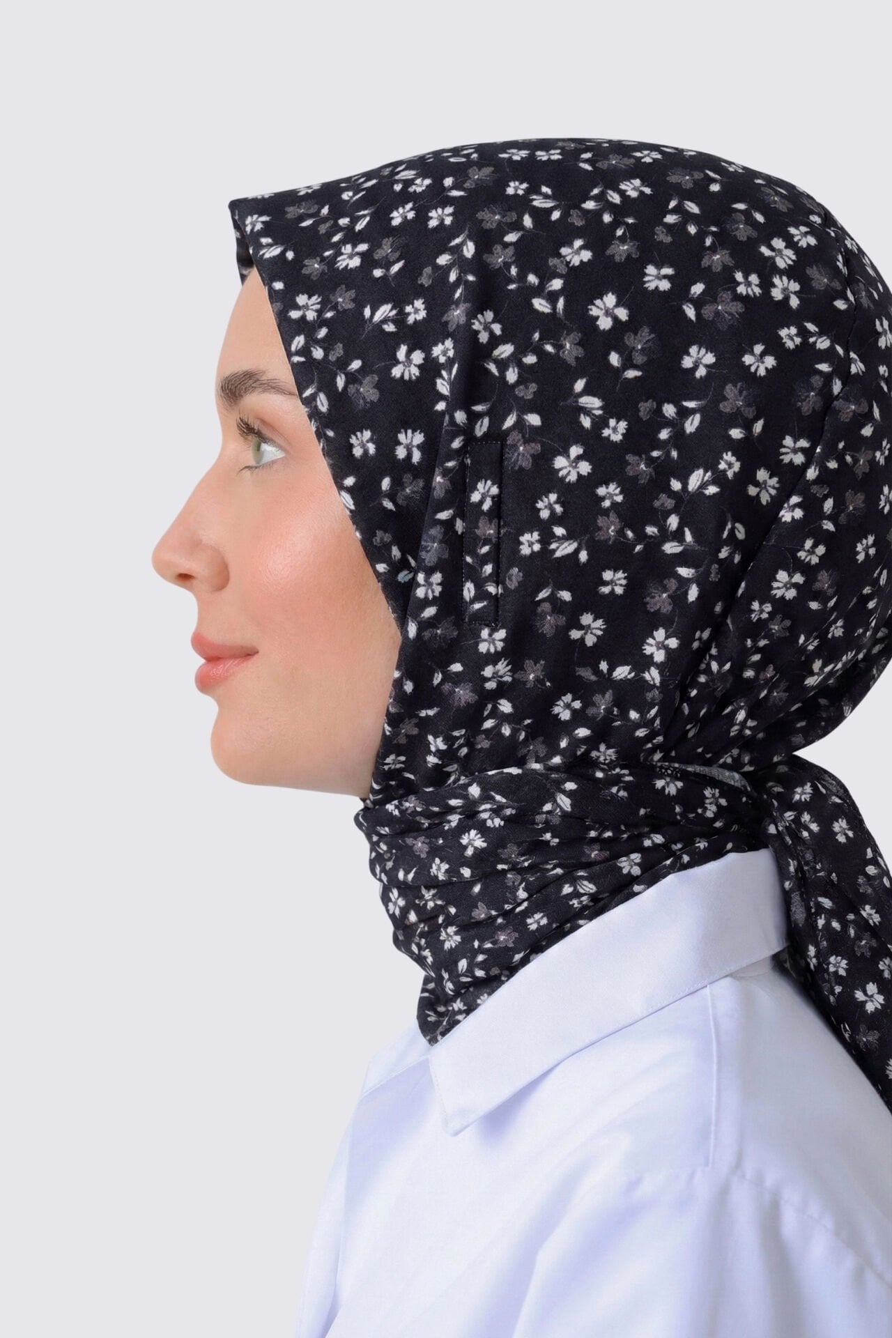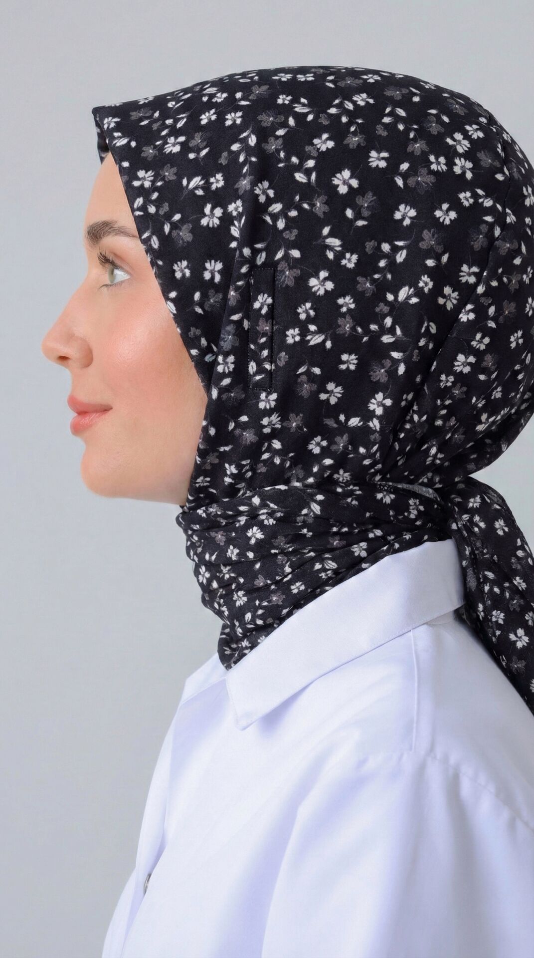 STETOSKOP GİRİŞLİ MİNİ ÇİÇEK DESEN CERRAHİ TESETTÜR BONE SİYAH