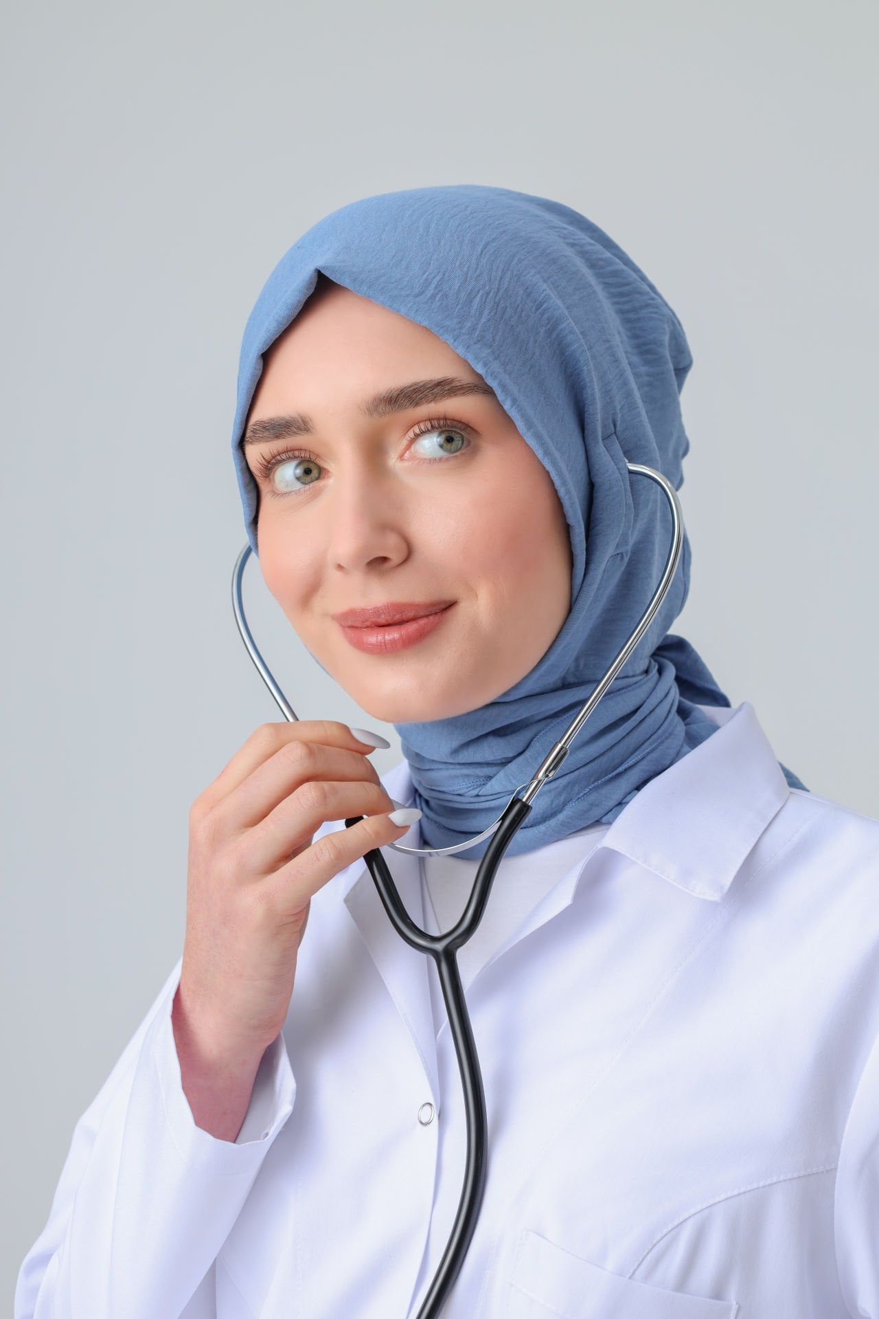 STETOSKOP GİRİŞLİ PAMUK CAZZ CERRAHİ TESETTÜR BONE KOT MAVİ